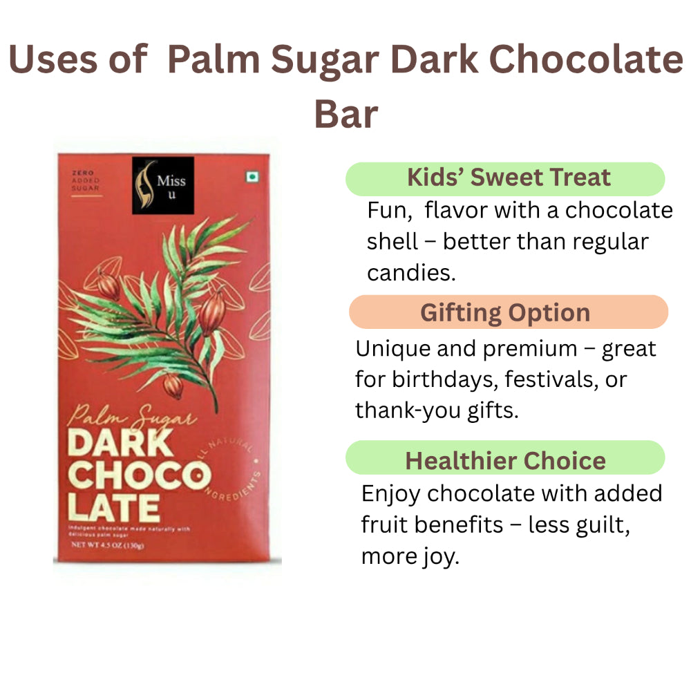 PRODUCT NAME : Amrutha Exports Miss U No added sugar Palm Sugar Dark Chocolate Bar - 130g