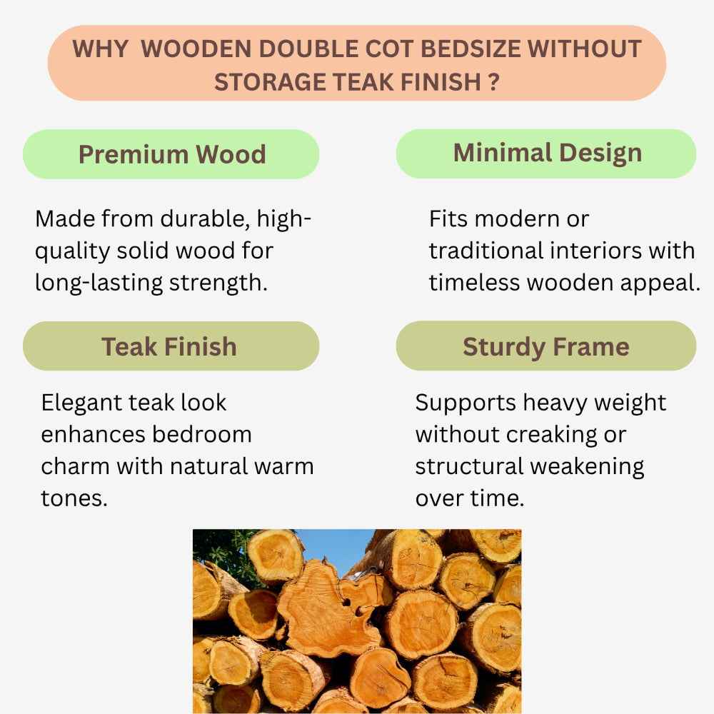 KPR Furniture Wooden Double Cot Bedsize Without Storage Teak Finish - 75 × 60 inches ( Brown )