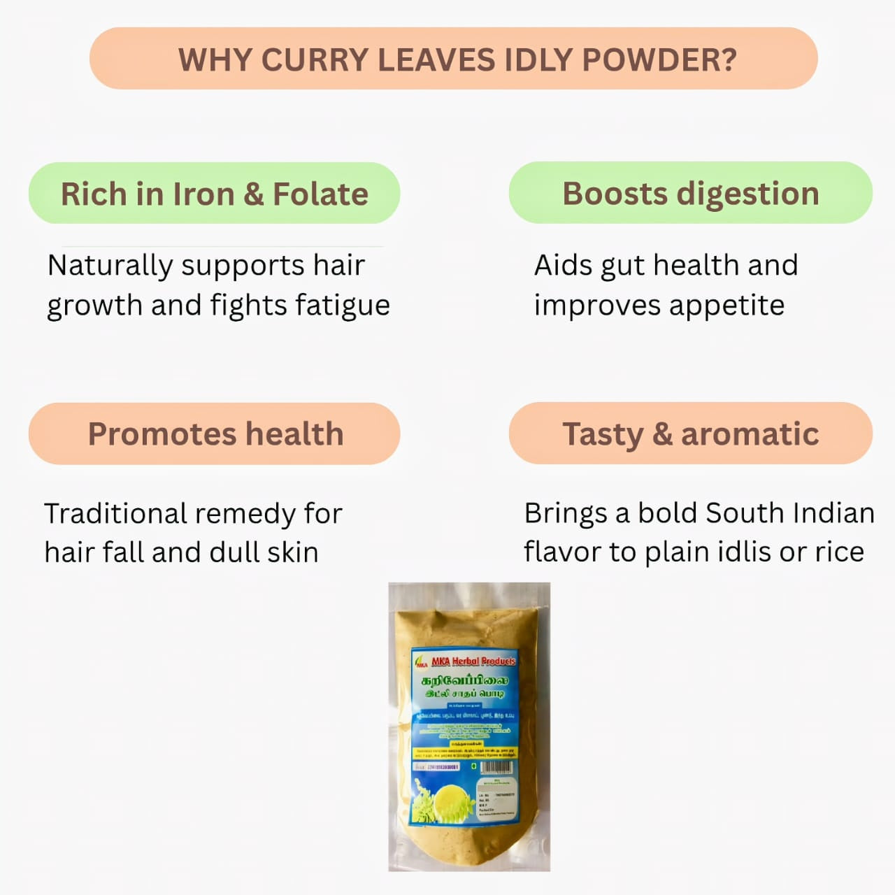 Curry Leaves Idly Rice Powder is a traditional South Indian mix made from high-quality rice and dried curry leaves. Specially formulated for making soft, fluffy, and aromatic idlis, this powder combines the natural goodness of curry leaves with perfectly balanced rice, giving your idlis a unique flavor and enhanced nutritional value. Easy to use, it is ideal for quick breakfasts and wholesome meals.
