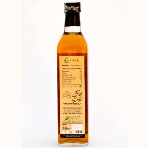 Nutriorgo Certified Organic Groundnut Oil - 500ml Glass Bottle