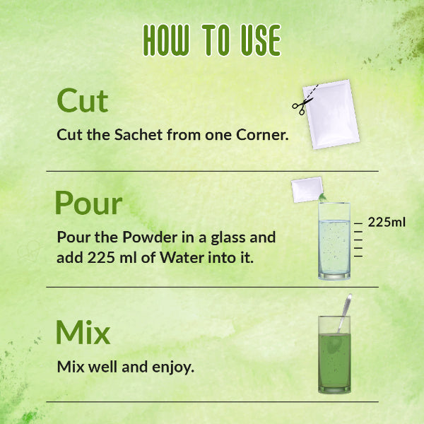 Instant Drink: Mix 1-2 tablespoons (about 20g) of Aam Panna Instant Drink Powder with a glass of cold water (200ml), stir well, and serve chilled.