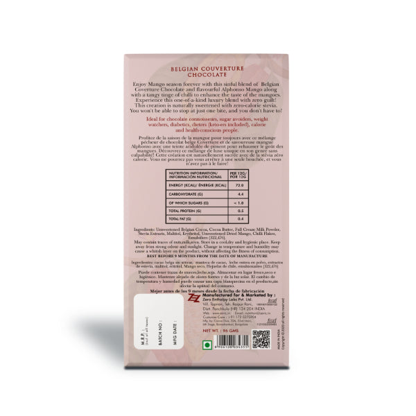 Zevic Belgian Couverture Chocolate with Alphonso and Chilli 96 gm