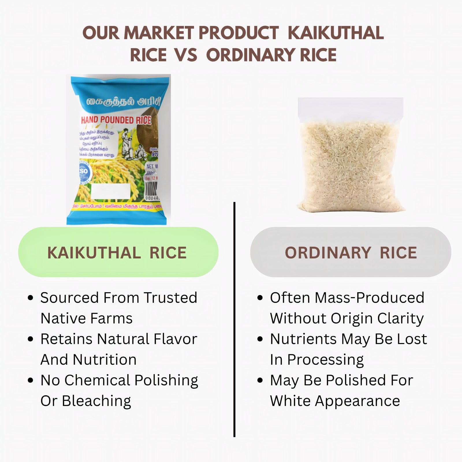 Araikkal Kaikuthal Arisi / Handpounded Rice - 500 g ( Pack of 2)