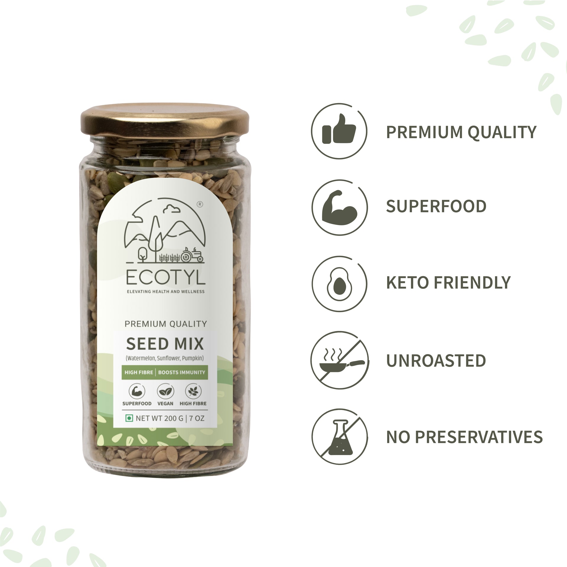 Ecotyl Seed Mix | Sunflower, Pumpkin, and Watermelon Seeds | Unroasted  - 200g