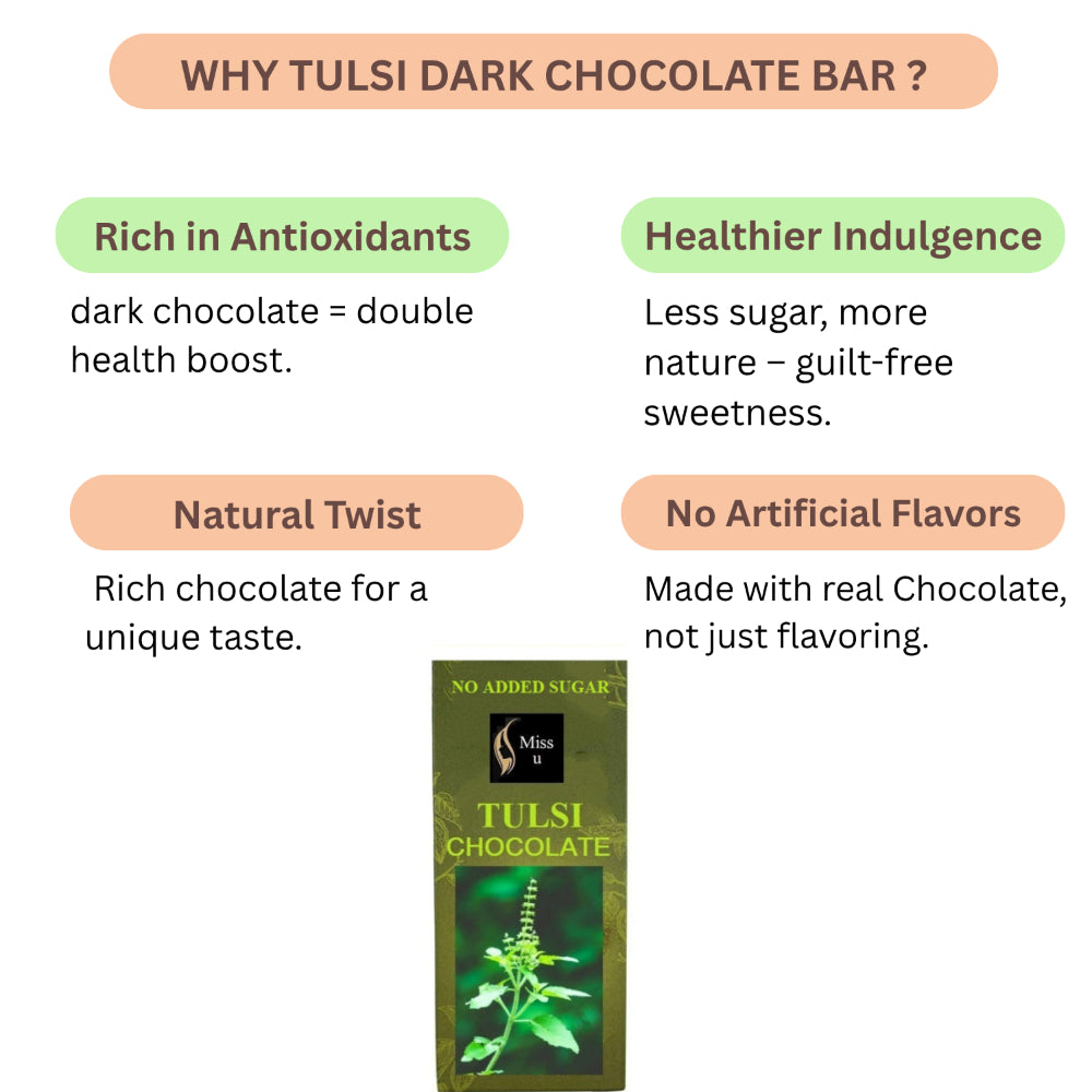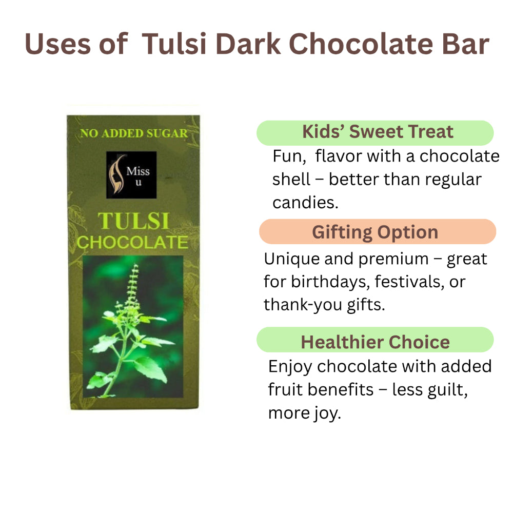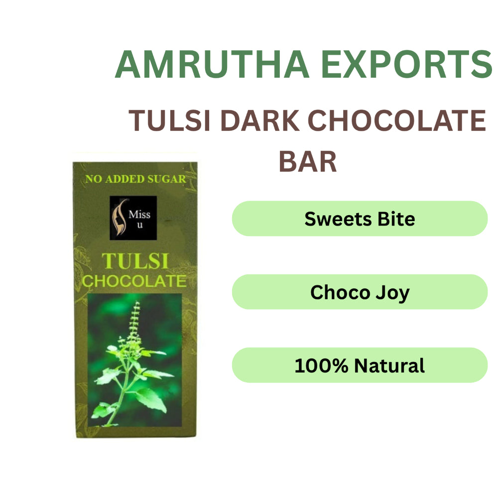 Amrutha Exports Miss U No Added Sugar Tulsi Dark Chocolate Bar - 120g