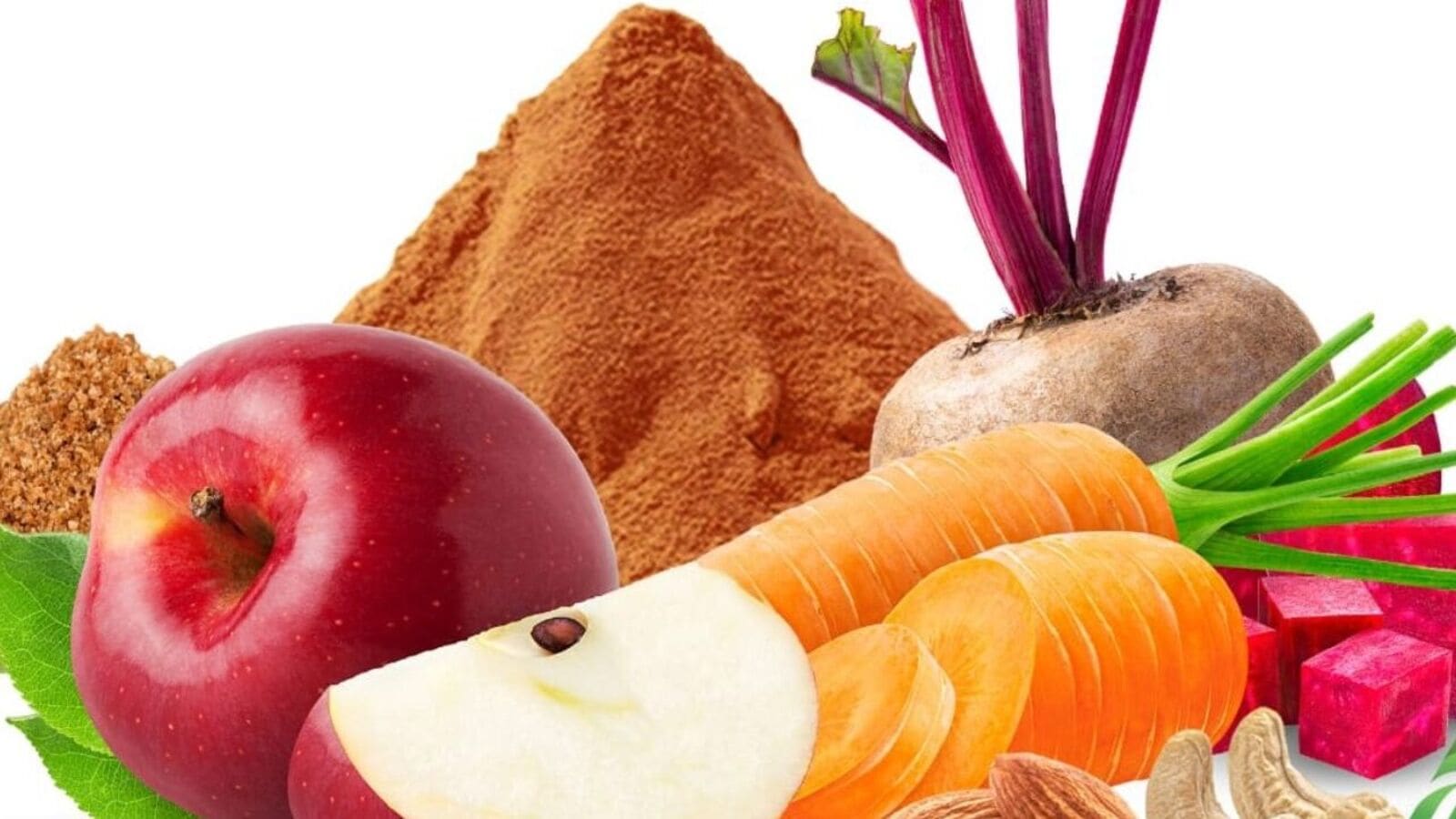 Fruits and Vegetables: Apple, beetroot, and carrot powders provide a rich source of vitamins A, C, and K, along with essential minerals like potassium and iron.