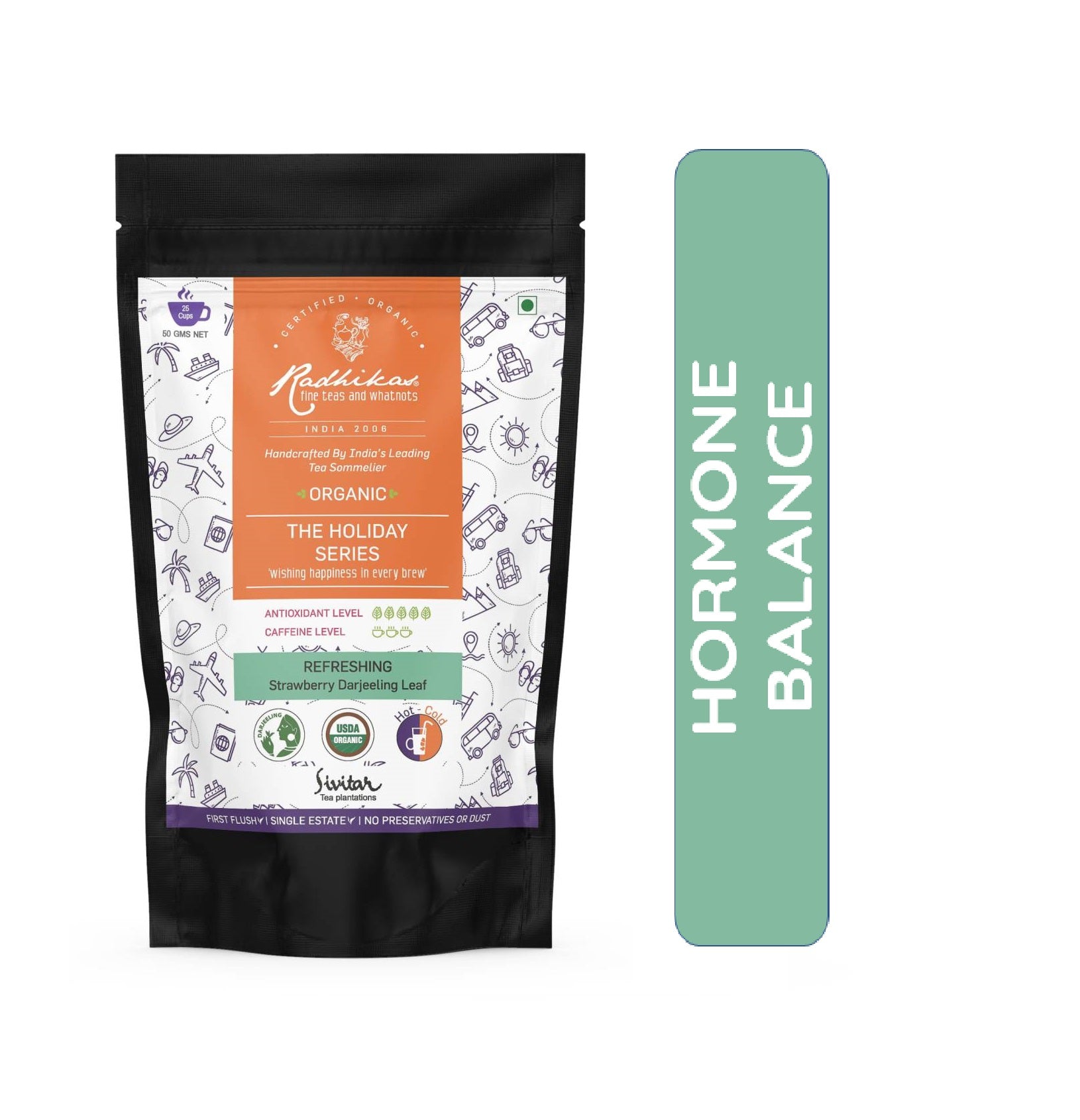 When darjeeling leaves, as pure and divine as the himalayan fresh air, are blended with strawberry, it promises to be a magical delight with radhikas fine teas. Our leaf is known for its biodynamic qualities, where single origin leaves are flushed in early spring to give you a pack of fresh tea. Natural strawberry, known to have immense antioxidants, blends into the darjeeling leaf giving you an aromatic tea, infused with healthy nutrients. It's got no sugar, no sweetner, just plantation fresh tasty tea.