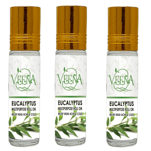 Veena   Eucalyptus Multipurpose Roll On – Relief Head Ache And Cold - 10 ml ( Pack of 3)
