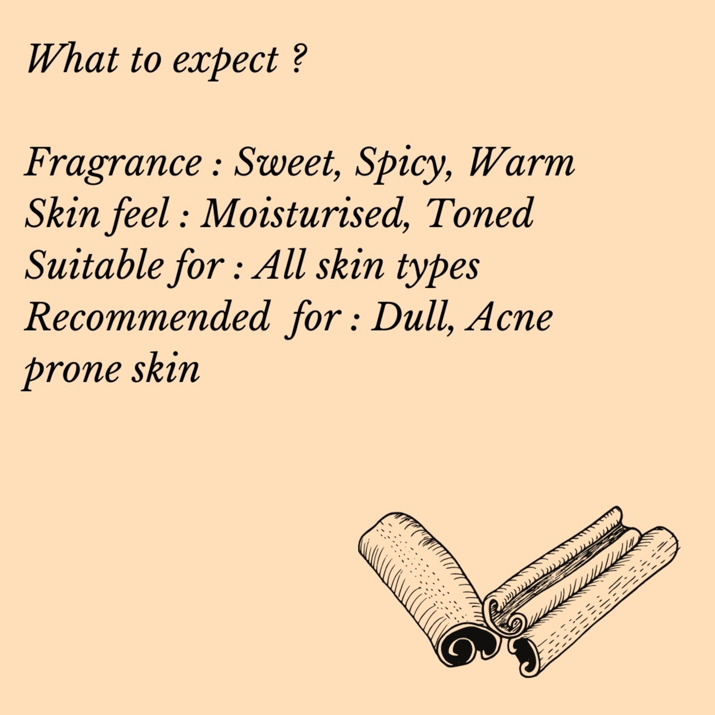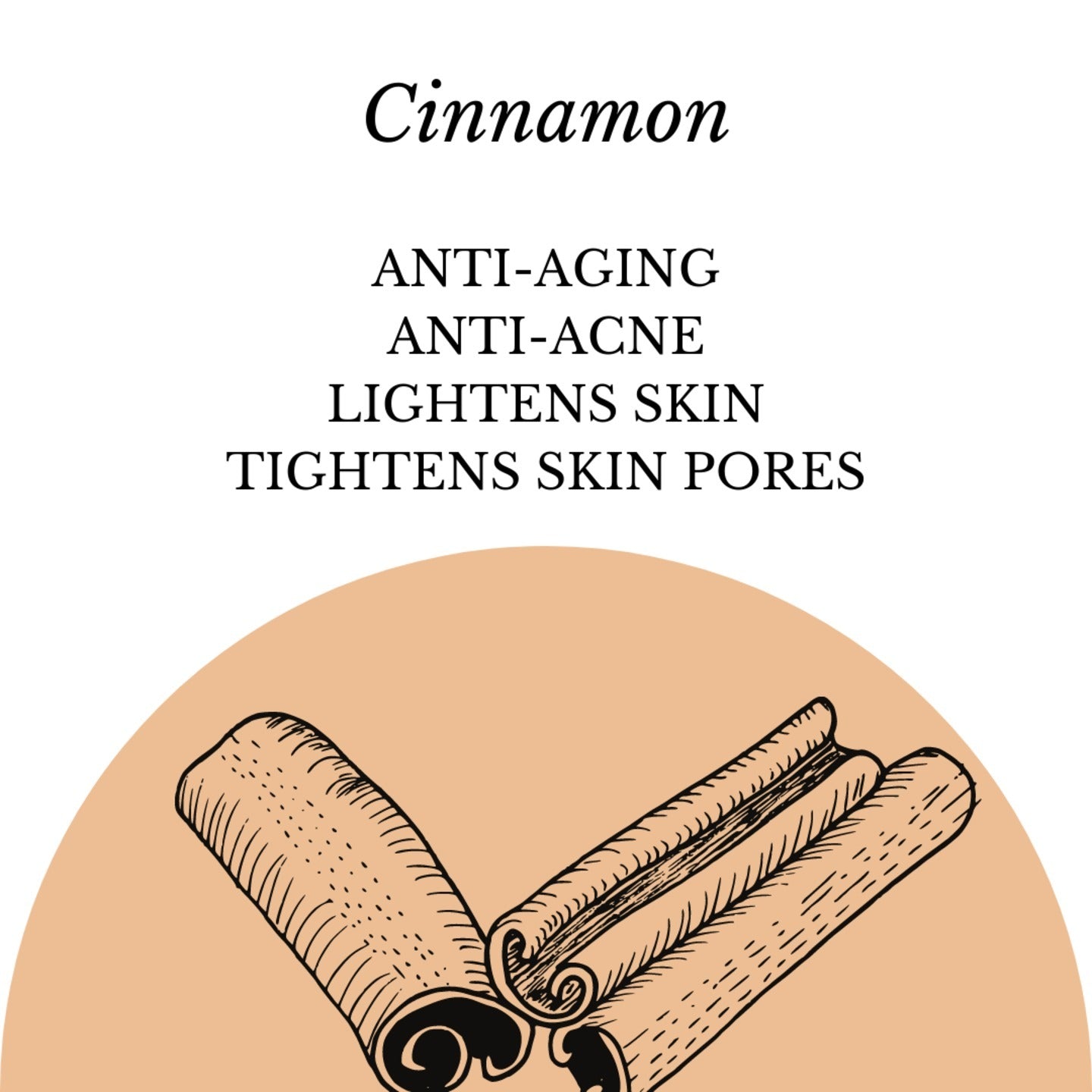 - இலவங்கப்பட்டை, ஷியா வெண்ணெய் மற்றும் அத்தியாவசிய எண்ணெய்கள் கொண்டு தயாரிக்கப்படுகிறது