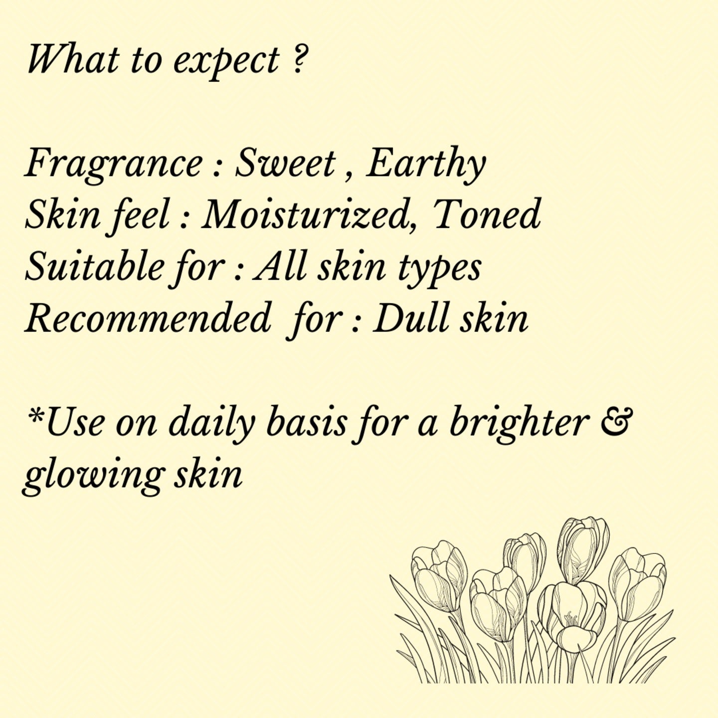 - குங்குமப்பூ எண்ணெய், ஜோஜோபா எண்ணெய் கொண்டு செய்யப்பட்டது
