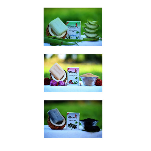 மக்கா மூலிகை வேம்பு மற்றும் அலோவேரா மற்றும் கரி மற்றும் பெண்டோனைட் சோப் - 300 கிராம் (3 பேக்)