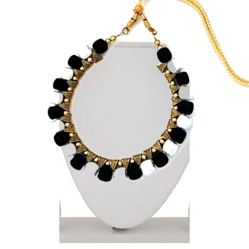 பெண்கள் மற்றும் பெண்களுக்கான பட்டு நூல் ஃபேஷன் நெக்லஸ் (கருப்புடன் வெள்ளை)