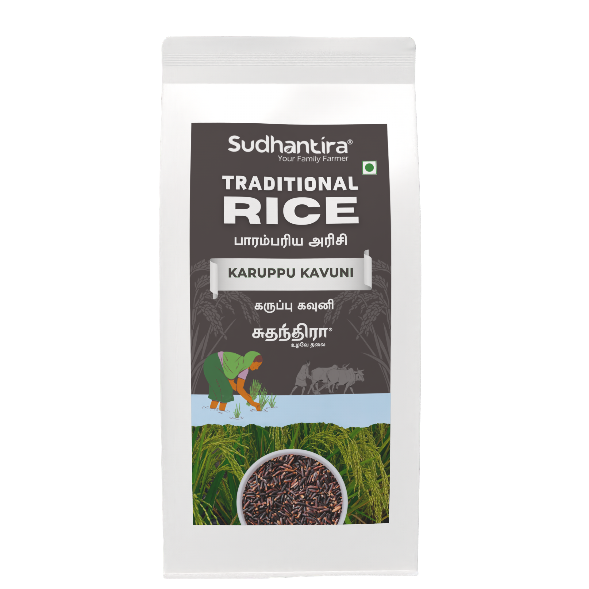 Karuppu Kavuni Rice, also known as Black Rice or Forbidden Rice, is an ancient traditional variety of rice native to South India. Naturally dark purple to black in color, it is rich in antioxidants, iron, and fiber, making it a powerful superfood. With a nutty flavor and slightly chewy texture, this rice is highly nutritious and often used in traditional desserts, porridges, and wholesome meals.